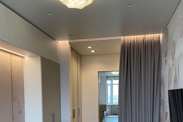 Парящие натяжные потолки – это современное дизайнерское решение, которое позволяет создать в помещении особую атмосферу. За счёт эффекта «парения» потолка, помещение кажется больше и светлее, а разнообразие вариантов подсветки открывает возможности для реализации самых смелых идей. В этой статье мы рассмотрим, что представляет собой парящий натяжной потолок, его преимущества, а также рекомендации по выбору и установке. Что такое парящий натяжной потолок? Парящий натяжной потолок – это конструкция, где полотно закреплено на стенах с небольшим отступом, а вдоль периметра устанавливается светодиодная подсветка. Этот зазор между полотном и стеной, освещённый светодиодами, создаёт эффект «парения» потолка в воздухе. Светодиодная лента может быть различных цветов и яркости, что позволяет добиться нужного эффекта в интерьере. Преимущества парящих натяжных потолков Эстетика и оригинальность Парящий потолок выглядит необычно и стильно, придавая помещению современный вид. Подсветка подчёркивает