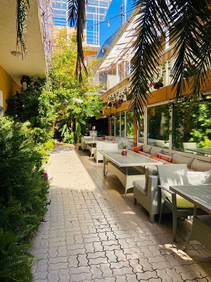 Заселились в отель, разложили вещи и решили пойти пообедать, а после на пляж. Днем во дворе никого, видимо, все на пляже и экскурсиях. Кстати, в отеле можно было взять бесплатную экскурсию на Красную поляну. Вышли на улицу Просвещения, огляделись, вокруг суета, снуют туда-сюда люди, бесконечно едут машины, ну что сказать, курортное место. Самый огромный минус этого района - это отсутствие тротуаров. Дома, гостиницы, торговые точки - всё впритык к дороге. Идёшь и думаешь, как бы на тебя не наехали. Интересно, как дела обстоят в других районах. Сразу напротив отеля аптека, были один раз по необходимости, возвращаться туда точно больше не хотелось. Одна цена на витрине, другая в чеке. На вопрос «Почему разница?» ответили: «А вам что, нужно вернуть деньги? Я не собираюсь». Уже тогда закралась мысль, а правильно ли мы выбрали место отдыха. Ну да ладно, идём дальше. Торговля идёт бойко, продают всё, что душе угодно, санитарные нормы практически нигде не соблюдаются. Прямо у дороги, на откры