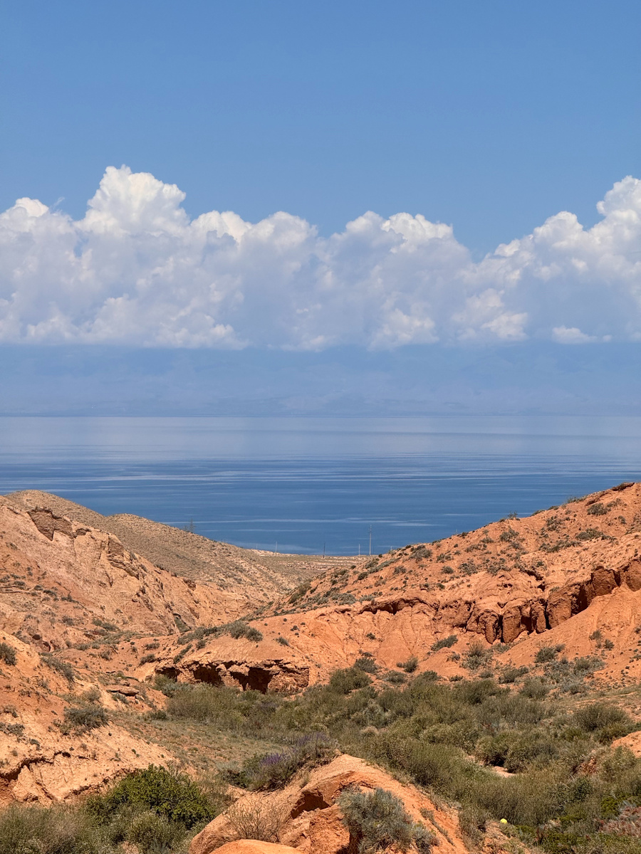 В детстве ездила с родителями на Иссык-Куль. Жадно ждала этих поездок — тогда мне были доступны только такие путешествия. Запомнилось ощущение расширения в груди, когда смотришь в темное окно автобуса, ночь светлеет и проявляются горы, скалы, дорога, а с первыми лучами солнца — голубая полоса на горизонте. Запомнился горный ветер, растаскивает прохладу и запах душицы, в кустах желтится бисером облепиха, на песке коврик, на нем трескается арбуз. Холодное озеро, которое называли морем, а я душно напоминала, что море только то, что связано с океаном. Толстые книги на желтом песке, ветер торопится их перевернуть, прижимаю пальцем страницы. Пчелы на приторных цветах, кожаные юрты-шкатулки и тапочки из войлока на туристической улице. Ощущение того, что мир — большой, драйвовый, полный приключений. Спустя 15 лет после последней поездки возвращаюсь на Иссык-Куль. И открываю места, в которых там ни разу не была. Мы объехали озеро по кругу, по диким пляжам и горным ущельям. По узкой тропинке