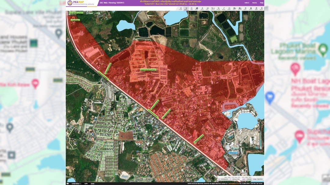 С 9:00 до 16:30 практически половина района будет без электроснабжения. Света не будет на восточной стороне Thepkrasattri Rd., от поселка Supalai Lake Ville до автозаправочной станции РТТ у въезда в Boat Lagoon. В зону отключения попадут улицы от Soi Koh Kaew 30 до Soi Koh Kaew 14.