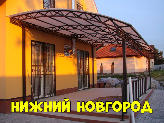 Изготовление металлических навесов на заказ по доступным ценам. Мы выпускаем продукцию любой сложности, ведь у наших специалистов многолетний опыт производства металлоизделий в Нижнем Новгороде! Вы можете заказать изготовление навеса самого разного назначения в Нижнем Новгороде: Основа конструкции преимущественно представлена стальным профильными трубами с нержавеющим покрытием. При изготовлении каркаса мы обязательно учитываем снеговую и ветровую нагрузки и делаем запас по прочности. Возможны варианты с использованием кованого металла. Наличие кованых элементов придает любому строению дополнительную привлекательность. Да и оригинальность исполнения не остается без внимания. Выбор навеса полностью зависит от ваших предпочтений. По типу стропильных конструкций выделяют следующие виды навесов: Кровля навеса может быть выполнена из различных материалов — поликарбонат, металлопрофиль, черепица, ондулин, рубероид и прочие. В случае, если это пристройка к основному зданию, их крыши можно объ