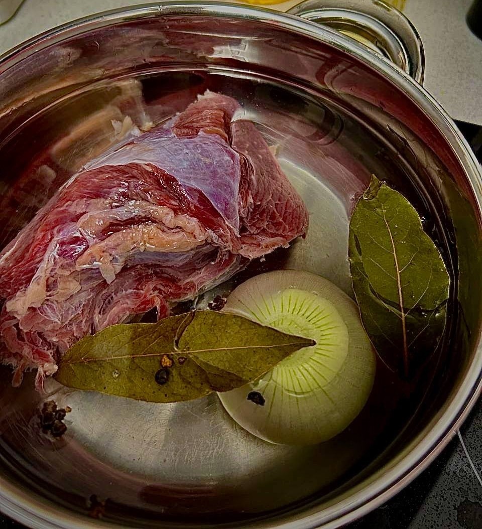 Хорошую хозяйку оценивает общество по многим критериям. Один из них - умение готовить вкусный борщ. До сих пор ведутся споры о местоположении создания борща. Исследователи склоняются к мнению, что борщ в качестве основного первого блюда в меню появился в Киевской Руси и уже оттуда распространился на близлежащие территории. Одно можно сказать точно, одной из основных ассоциаций у иностранцев с Россией является, именно, "Борщ". У каждой хозяйки имеется свой рецепт приготовления данного блюда. Мой же, достался мне от бабушки, а ей - от ее. Сегодня хочу с вами поделиться коронным рецептом нашего семейного борща. Граммовки, указанные ниже - рассчитаны по нашему усмотрению, мы любим густой суп, добавив меньше по граммам ингредиентов, можно получить суп жиже, варьируйте самостоятельно по вашему вкусу. Для приготовления на 3л. супа нам понадобится: Говядина - 300гр. Картофель - 3 средние шт. Капуста - 300гр. Лук - 2 шт. Морковь - 1 шт. Свекла - 1шт. Помидоры свежие - 5шт. (если крупные,