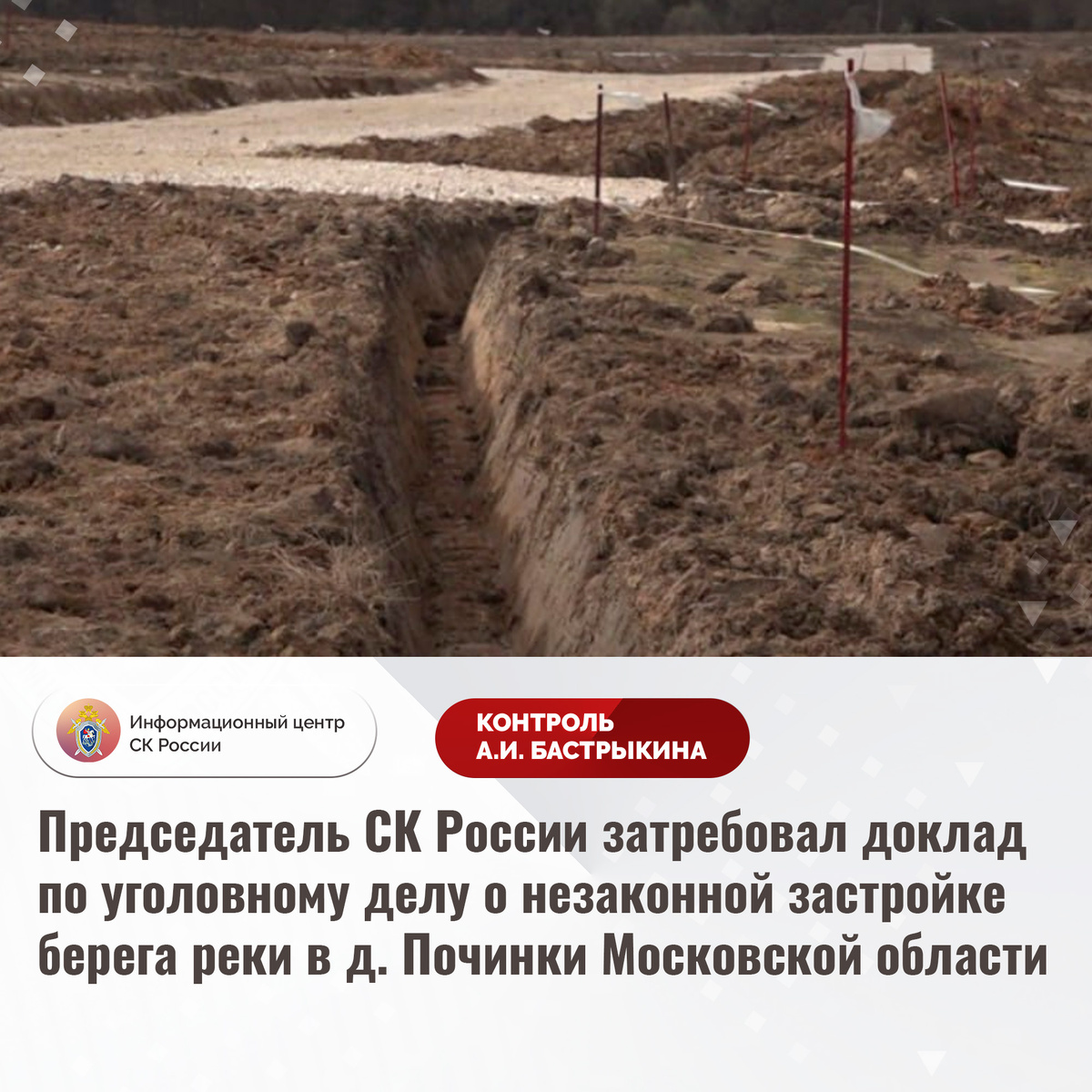 Председатель СК России затребовал доклад по уголовному делу о незаконной застройке берега реки в д. Починки Московской области