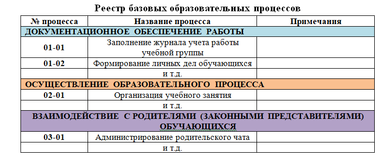 1. Реестр базовых образовательных процессов, который будет включать в себя все основные императивные базовые образовательные процессы, предусмотренные в организации.