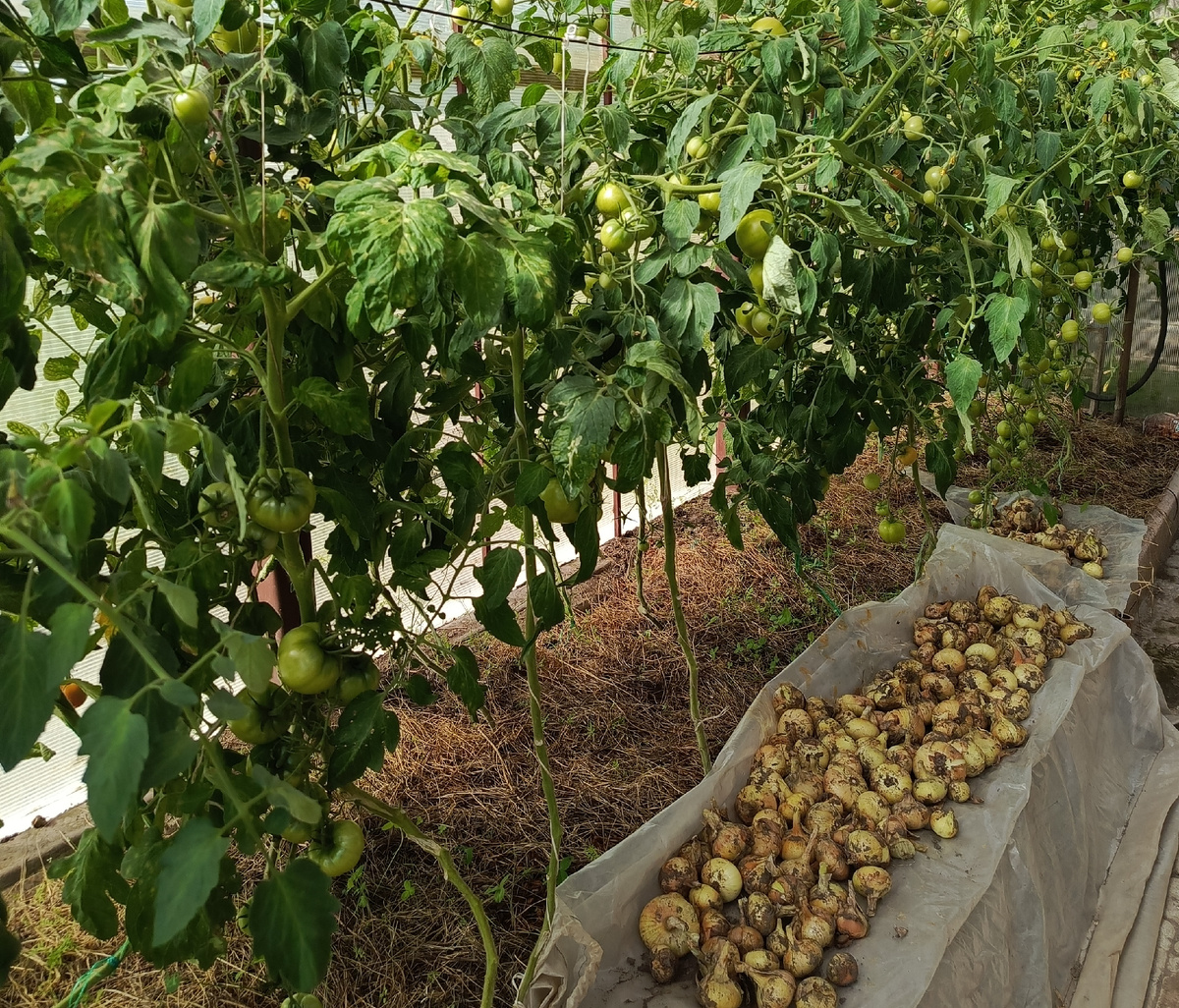 2 дня ходила по врачам. Всех обошла, сдала ЭКГ, прошла флюорографию, ещё кардиолог вчера направила на узи сердца, записали только на 16 августа. Гинеколог ещё остался. С этой больницей и дома никакой работы. Всё ещё нога болит. Прихожу домой и понимаю, что никакой я больше не работник. Сегодня всё равно надо было хоть как собрать помидоры в теплицах . Пару штук гнилых уже видела. Болит, не болит, поехали на дачу. У меня нога, у мужа спину прихватило... Собрали самые крупные помидоры, наверху ещё полно незрелых. Собрала почти все перцы. Мелочи тоже много ещё. Не знаю успеют ли вырасти. Огурцы почти всё. Сорвала сегодня только 10 штук. Но нам больше и не надо. Насолила, хватит. Они и не растут уже. Холодно на улице, ночами ниже 10 градусов. Слышала от людей, что вообще ещё не закатывали. Кто поздно посадил, только начали завязи появляться и тут же гниль пошла. Помидор, мне кажется, тоже меньше, чем в прошлом году. Да и ладно. Лето такое непутевое, что поделаешь. Сначала жарило, потом