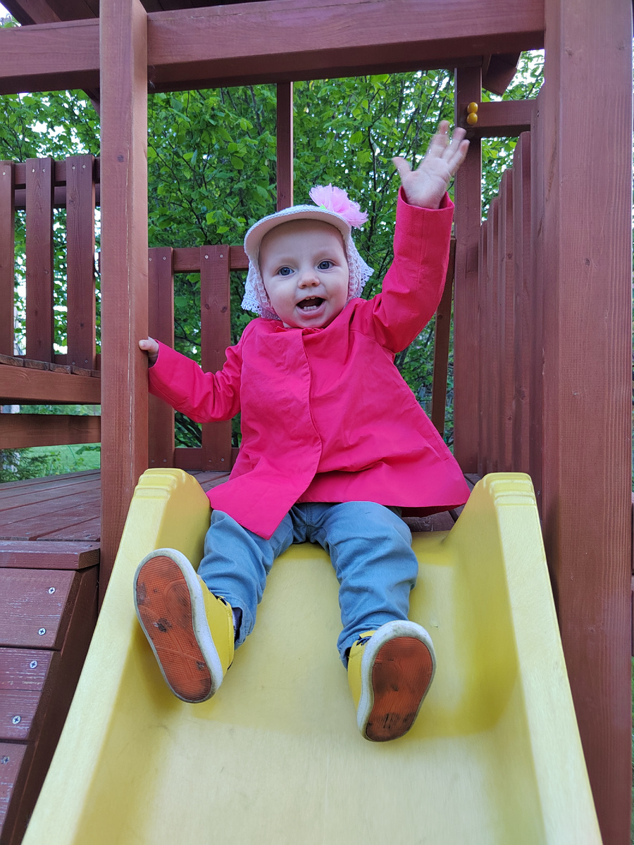 Лерочке сейчас всего 1,5 годика. Шустрая девчонка! Вовсю бегает, много болтает уже целыми фразами. Очень сообразительная! Занимается в нашем домашнем детском садике, очень старательно все выполняет.