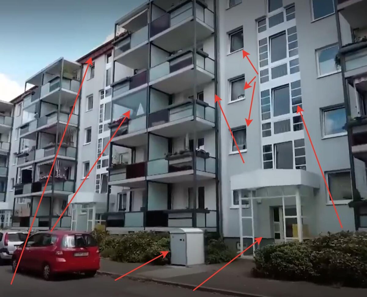Что еще натворили немцы в рамках реновации пятиэтажек, я показал стрелочками.