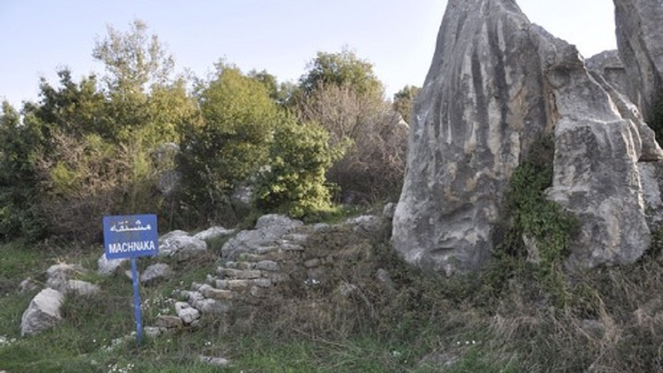 Весь комплекс оставшихся развалин датируется первым или вторым веком нашей эры. Машнака находится на высоте 950 метров на западных склонах Ливанских гор, примерно на полпути между Библосом и Африкой или вверх по дороге, ведущей из Джбейля в Картаву. Мачнака занимает удачное место на священной дороге из Библоса в Африку, к источнику Адониса. В скалах, возвышающихся над дорогой, ведущей к этому месту, высечены погребальные ниши, на некоторых из которых до сих пор сохранились крышки. Почти на каждой гробнице изображены скульптурные сцены. Руины римского храма, заключенного в ограду длиной 95 м и шириной 50 м с монументальным дверным проемом, который все еще удерживается стеной из внушительных камней. В дальнем конце двора, обращенном ко входу, стоит квадратное сооружение, окруженное колоннами, а рядом с ним находятся два алтаря, к которым можно подойти, поднявшись по нескольким ступенькам. Древний алтарь в форме низкой башни, похожий на более известные алтарные башни такого типа в Большом