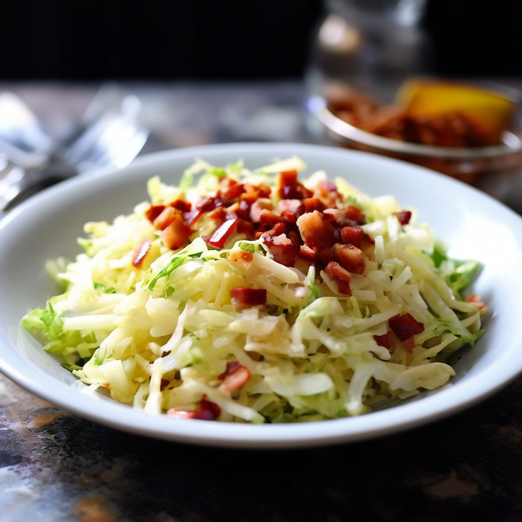 Этот салат не только вкусный, но и необычный. Начнем с подготовки ингредиентов. Для начала нарежьте 100 г бекона кубиками и обжарьте их на сковороде до хрустящей корочки. Затем выложите бекон на бумажные салфетки, чтобы убрать лишний жир.