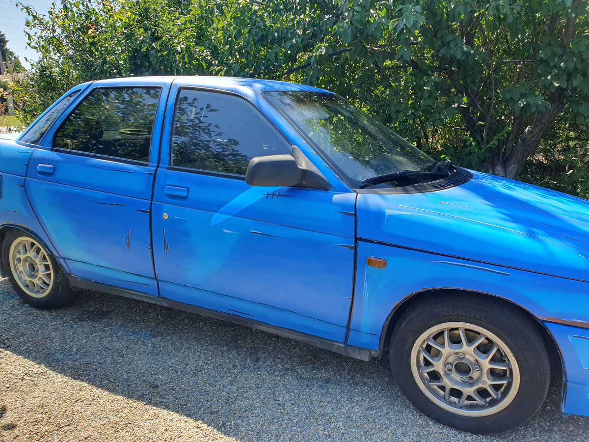 Хочу поделится своим опытом покраски авто из балончика. Всё началось с того, что вид моей машины меня не совсем устраивал, на крыше лак полез, где-то ржавчины, где-то сколы, вобщем появилась мысль покрасить бюджетно, в любом случае хуже уже не будет)) и решил я красить не в родной серый, а в голубой яркий, матовый приятный цвет Внесение изменений в ПТС из-за цвета 850 руб, с этим вообще проблем не было. Красил я не автомобильной краской, а для граффити Arton называется, у них очень большая палитра цветов, краска в плане нанесения очень хорошая, ложится ровно, без полос, бысто высыхает. Лак я не наносил, в этом есть и плюсы и минусы. В случае появления сколов, а чаще всего страдает передняя часть авто от камней по трассе(на фото выше это видно),можно просто подкрасить место и не будет видно перехода, но это если краска относительно свежая, примерно через год она начинает выгорать, если попадают бензин или масло, они уже не вытрутся, нужно будет подкрашивать. Вот спустя год эксплуатаци