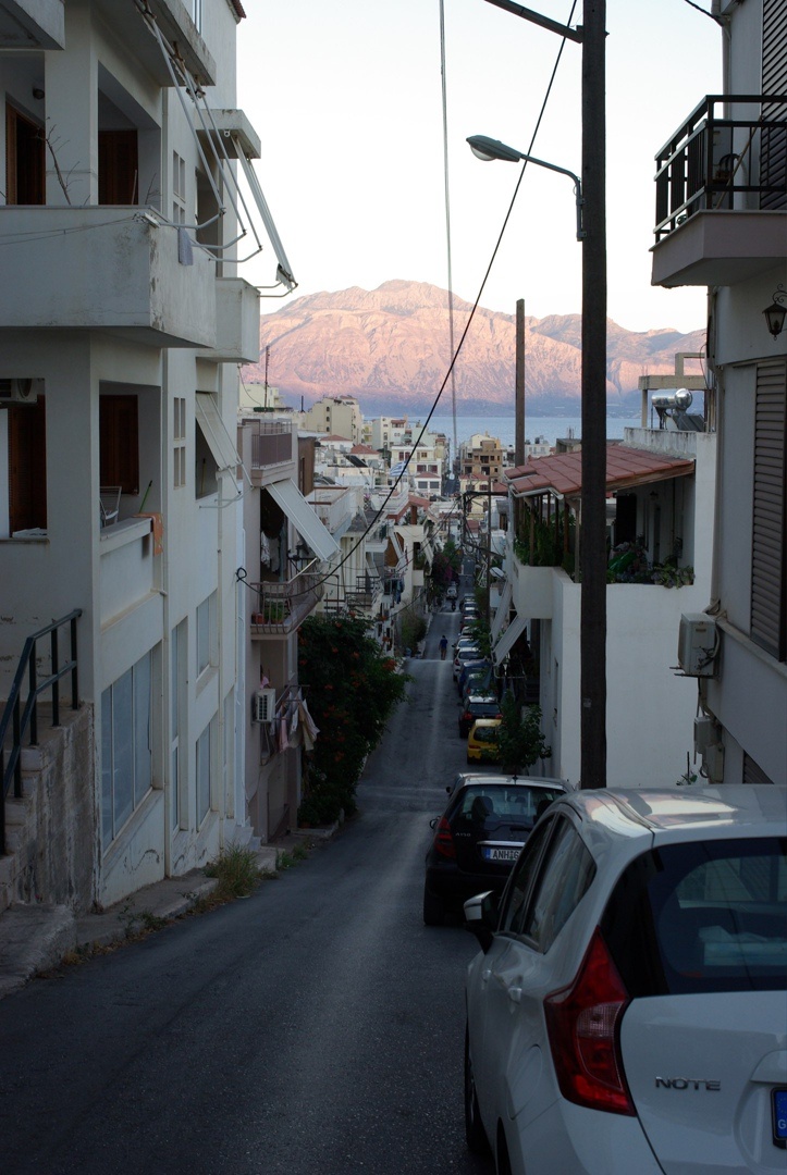 Мы жили в гостинице с пышным названием "Афрогиалис". Через дорогу у нас было море, и отделяла от него лишь дорога - та самая, идущая через Крит, несущая бесконечные вереницы машин, желающих попасть в самый северо-восточный (крупный!) город острова Крит.