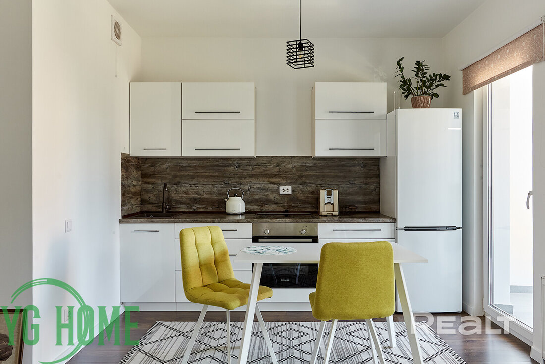 Многие квартиры на Realt можно купить в лизинг, оформив заявку прямо на сайте. И мы продолжаем рассматривать подробнее такие варианты. Сегодня смотрим, что можно купить в Новой Боровой, если на первый взнос есть только 25 тысяч долларов. Условия лизинга можно корректировать — уменьшать или увеличивать количество лет, на которые хотите растянуть платеж, а также размер первоначального платежа. А здесь можно проконсультироваться и получить ответы по конкретному случаю. Начинаем нашу подборку по традиции с самого бюджетного варианта. Это квартира-студия по адресу Миля, 12. Дом 2022 года постройки, в нем 6 этажей. Дом находится около аллеи. В квартире свежий ремонт, и покупатель будет первым, кто живет в квартире. Общая площадь — 25 квадратов, жилая — 16. В квартире светлые стены, установлена кухня с техникой — вытяжкой, варочной панелью, холодильником и духовым шкафом. В совмещенном санузле установлена душевая кабина и стиральная машина. Есть застекленная лоджия. Второй вариант — кваритра-