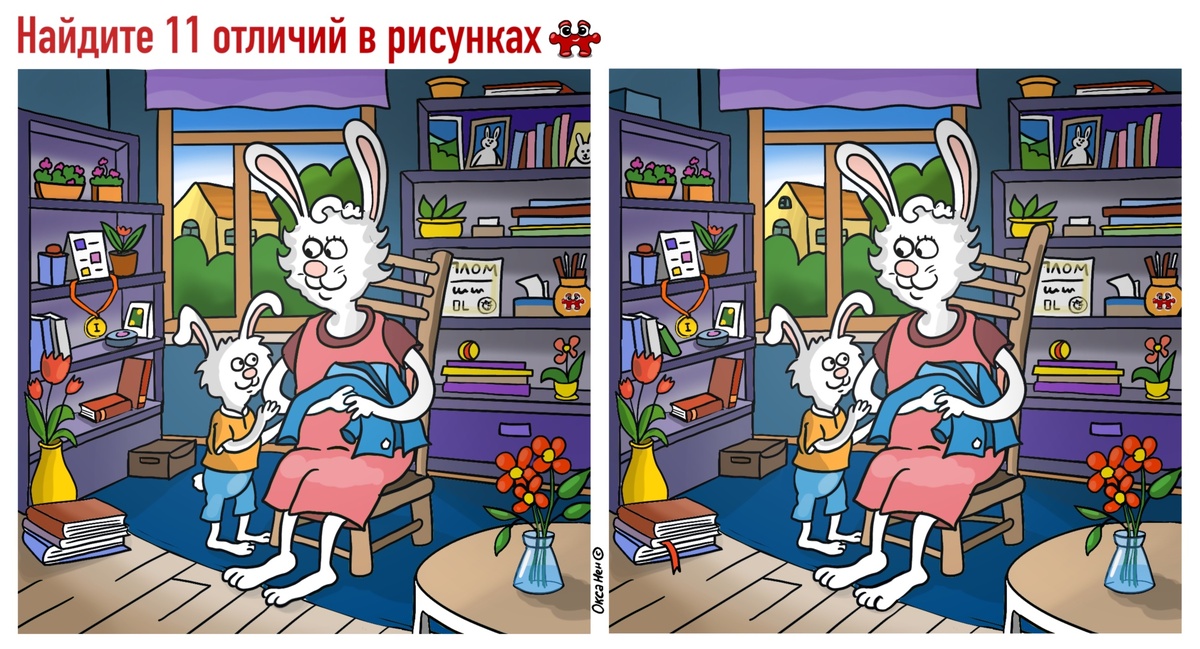 11 отличий на картинках про зайцев. Тест памяти и внимания для всей семьи.
