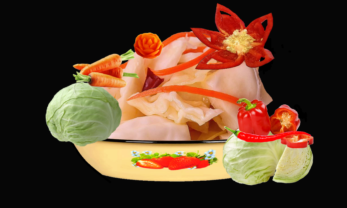 Большая часть заготовок стоит, а капустка эта съедается в первую очередь. Делаю небольшими порциями, поскольку хранить негде, ведь в условиях городской квартиры не очень то много места. Тем более, что и подсобки нет. Честное слово, если бы у меня был подвал или погреб, я бы целыми бочками запасала и капусту, и грибы, очень уж я их люблю. Да и, вообще, согласитесь, зима протекает куда уютнее, когда есть в запасе дары лета и осени. 1. Половину от всего количества капусты грубо нашинковать. Кочерыжки не нужны. 2. Вторую половину капусты нарезать довольно крупными кусками и разделить на листочки. 3. К шинкованной капусте натереть морковь на терке для корейских салатов. 4. Нарезать соломкой болгарский перец и положить небольшие кусочки перца чили. 5. Насыпать соль и щадяще помять. 6. Оба вида нарезки объединить и перемешать. 7. Плотно утрамбовать капусту в эмалированную кастрюлю, сверху положить плоскую тарелку и установить гнет. 8. Оставить капусту при комнатной температуре. Через 5 дней к