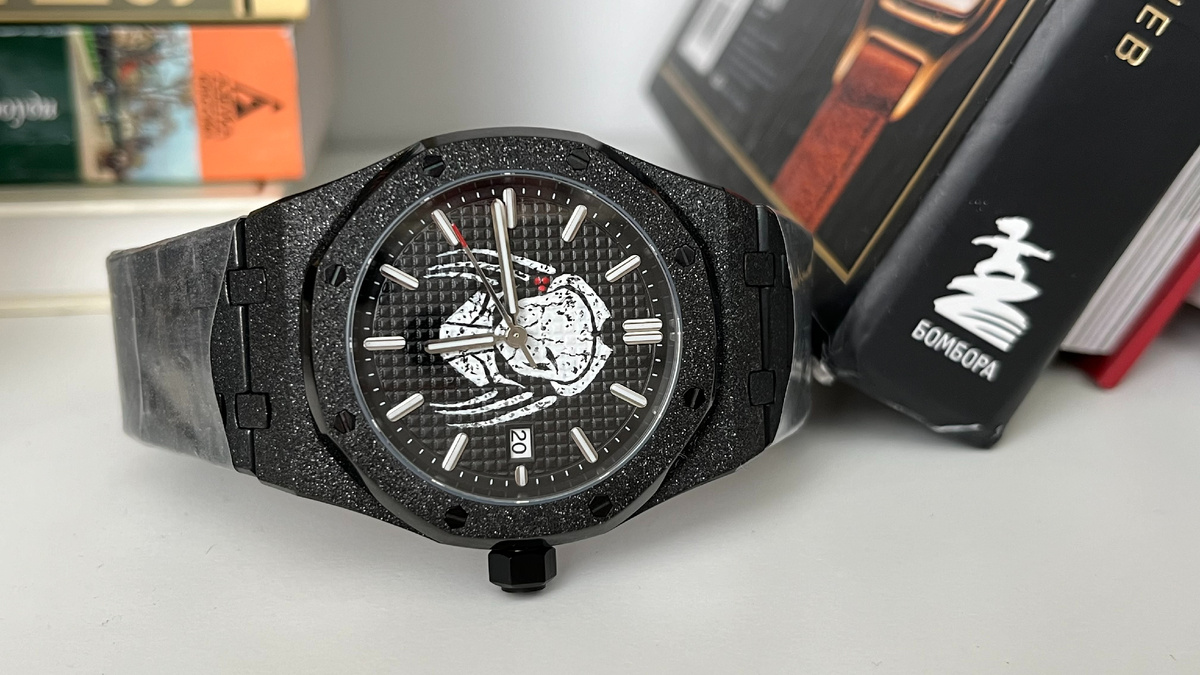 Хочу похвастаться двумя нашими новинками. Первая – Кастом на тему Predator к выпуску нового фильма франшизы с основой на базе механизма Seiko. Самое интересное в модели – безусловно циферблат. Рифлёная поверхность с мелкими кубиками крайне неудачный выбор для росписи в любом стиле, но мы справились. Стилистика рисунка выполнена как настенная живопись (граффити) на старой потрескавшейся стене. Все изображение выполнено в белых тонах с двумя красными элементами, прицел хищника и кончик секундной стрелки. Модель в единственном экземпляре, как проба пера. Характеристики часов: часовая сталь, сапфир, механизм с автоподзаводом Seiko TMI NH35. Стоимость часов 29 990 Истрия второй модели интересна и очень показательна. Идея – деление суточного (24-ти четырех часового) циферблата на циклы рабочего и личного времени.: работа (work) от 9 утра и до 18 часов и не работа (not work) от 18 часов до 9 утра. При этом, верхняя точка часов начинается не с 12 (нуля) часов, а с 9 - от начала рабочего дня. Е