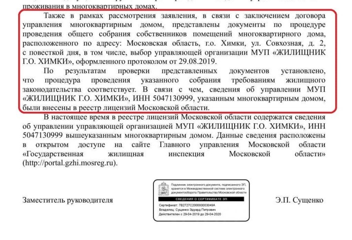 Какие странные дела творятся за спиной у жителей нашего дома. Вот мы случайно узнаем, что провели общедомовое собрание и изменили управляющую компанию. Вот нам приходят платёжки от неизвестной УК, хотя в реальности дом по-прежнему обслуживает наша законно избранная УК. А выставление двойных платежей запрещено по закону. Мы обратились в госжилинспекцию м.о., чтобы узнать, на каком основании у нас поменялась УК. И вот какой нам пришел красивый ответ от ГЖИ: Допустим, были какие-то документы. В процессе суда по отмене результатов поддельного собрания, которое устроил МУП Жулищник, судья запросил протоколы общего собрания собственников. И тут выясняется, что есть еще некое письмо от товарища Гаевского, который на тот момент был руководителем МУП Жилищник. Вот это письмо: Т.е. мы видим, что в некий момент Жилищник испугался и пошел на попятную. А куда же делись документы и были ли они вообще? Вот ответ на судебный запрос документов от ГЖИ: Т.е. ГЖИ сообщает, что в ответ на письмо о том,