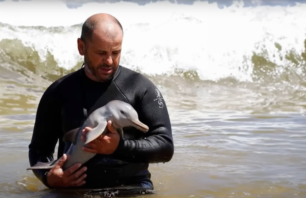 Брайан не колебался ни минуты. Он бросился к испуганному животному на помощь. Все действо происходило под самой поверхностью воды, и Брайан беспокоился, что его заметят, но он не мог оставить животное. Мужчина стал очень аккуратно разрезать сети, чтобы ненароком не поранить млекопитающее. Как только дельфин оказался на свободе, он радостно запищал, а дельфиненок бросился к своему сородичу. Так Брайан понял, что это была его мама. Самка дельфина поблагодарила человека за его помощь и тут же скрылась на глубине вместе со своим детёнышем.