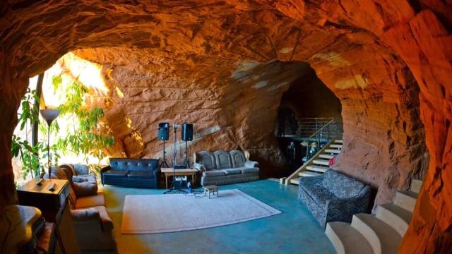 Пещера Бедрок Хоумстед, Боулдер, ЮТА : Этот дом немного меньше, чем обычно, но о нем стоит упомянуть, потому что это, возможно, просто один из самых уникальных домов, с которыми мы сталкивались, особенно сейчас, когда любители активного отдыха начинают готовиться к летним путешествиям. Расположенный в восьми милях от Боулдера, ЮТА, это не просто дом отдыха и не просто пещера — это произведение искусства!