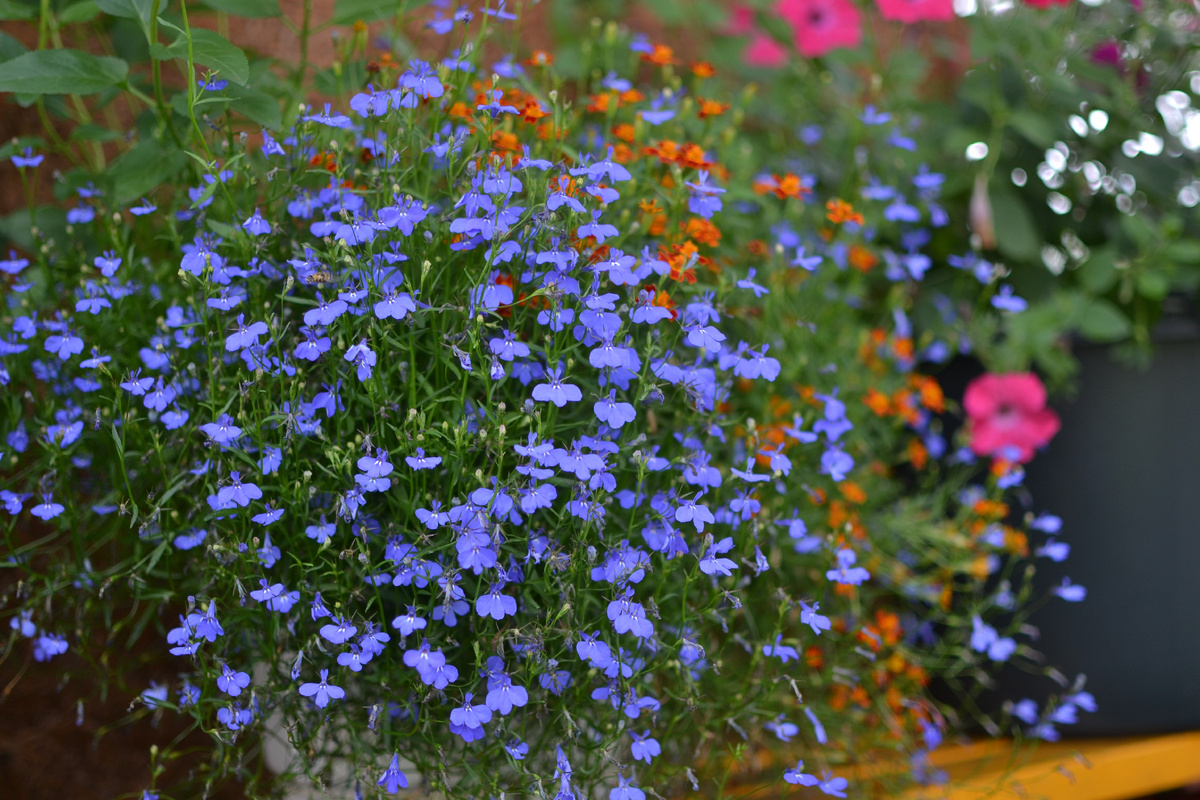 Мои горшечные композиции в этом году выдали мне красоты, как с козла молока. Впрочем, и в прошлом тоже. А если поднапрячь память, то вполне вероятно, что и в позапрошлом. Но это и закономерно. Если я равнодушна к комнатному цветоводству, почему это в саду мои горшки должны резко превратиться в висячие сады Семирамиды и стать пышными оазисами стиля и ботанического жизнелюбия? Совершенно не должны и не собираются. Приехала я по долгу службы погостить на дачу к маме и папе. А там... Помните, с какой интонацией на старых советских пластинках перечисляются сокровища, обнаруженные Али-Бабой в пещере разбойников? А теперь примерьте эту восхитительно-перечислительную интонацию к обширному списку однолетников и поймёте, что я увидела у мамы в саду. Но если в целом всякие петунии и ипомеи оставляют меня равнодушной, хотя я и отдаю должное их яркой купеческой красоте, то неожиданное сочетание бархатцев и лобелии заставило меня замереть в восхищении. Скромняги тонколистные бархатцы, небольшие к
