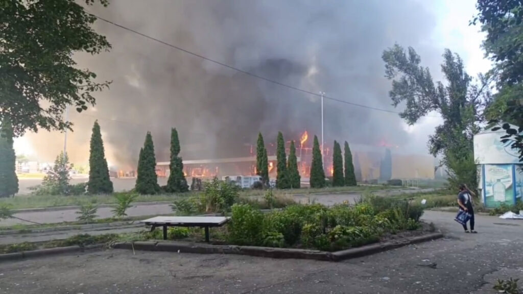 После обстрела ВСУ сгорел крупный ТЦ «Галактика».