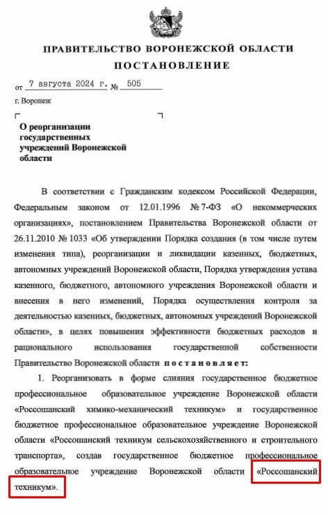 Россошанский химико-механический техникум, экс-директор которого попала под уголовное дело, перестанет существовать. Как и еще одно учебное заведение — Россошанский техникум сельскохозяйственного и строительного транспорта.