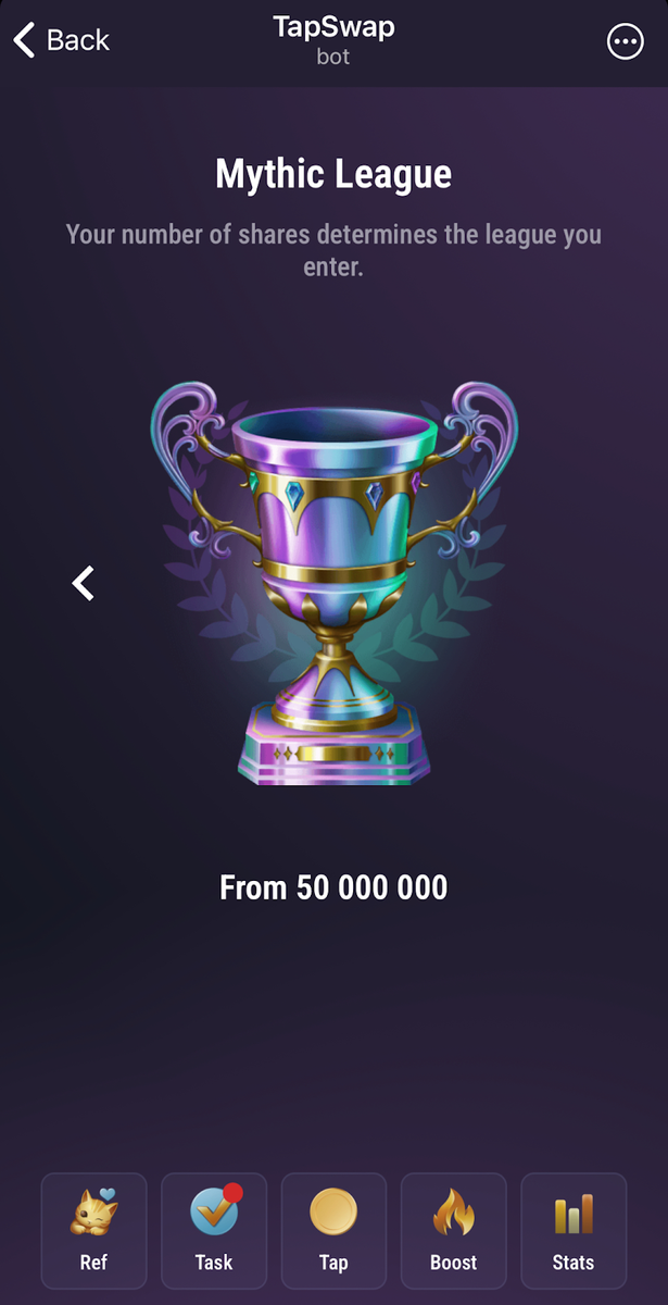 Количество токенов/акций, которые вы можете заработать в день, ограничено вашим лимитом энергии, начиная с 500 энергетических баллов. Вы начинаете с Wood League с 0 акций, а затем повышаете себя до Бронзовой лиги, когда начинаете настучать. По мере того, как вы зарабатываете акции и повышаете уровень, вы можете подняться вверх по графику лиги и достичь Мифической лиги, которая требует минимум 50 миллионов акций.
