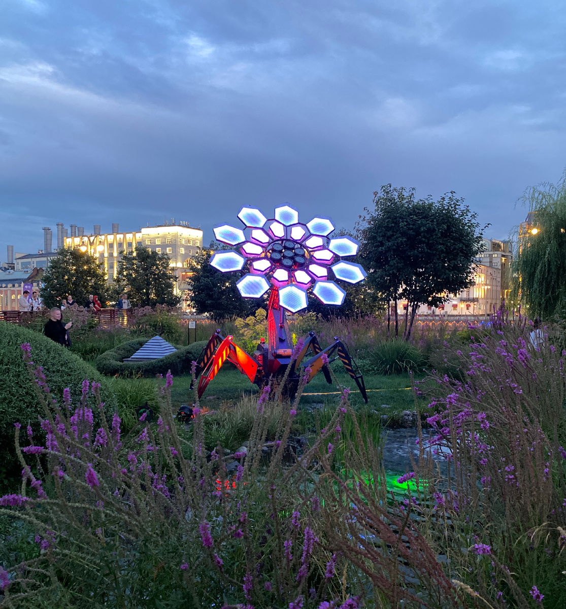 Добрый день! Сегодняшний пост будет сразу про две площадки потому что у них есть одна общая особенность - во всей красе они раскрываются только после захода солнца. Именно здесь вечерами проходят самые красивые концерты, а расположенные на территории арт объекты расцветают пышным цветом. Сейчас покажу наглядно на примере одной инсталляции вроде и так симпатично, но посмотрите, насколько более сказочно смотрится она же всего через пару часов И так эта магия работает везде. Поэтому самые запоминающиеся впечатления и фотографии вы получите ближе к 9 вечера. Давайте посмотрим, что именно вас ждёт в парке Зарядье и зачем вам нужно туда сходить пока фестиваль не закончился Волшебная роща световых столбов Целый парк сказочных птиц. Я сфотографировала только одну, чтобы не показывать вам все и оставить место для сюрпризов Удивительный портал, похожий на гнездо, уютно расположившийся на берегу озера Затонувшая планета (днем она перед вами предстанет простым белым шаром, и только после