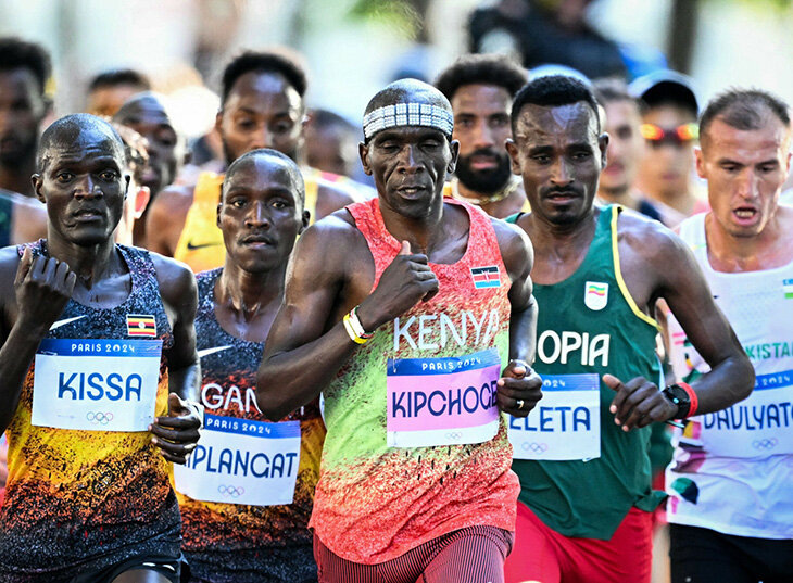 Изначально было ясно, что медальных шансов у Элиуда Кипчоге на этой Олимпиаде – никаких. Осенью ему исполнится 40, а вечно это продолжаться не может. Плюс великий кениец – гений равнинных бегов, а марафонская трасса в Париже – на выживание: с набором высоты 450 м и горочками с градиентом 16%. Но все равно верилось в чудо. Это же Кипчоге! Тот самый, который выиграл марафоны в Рио-2016 и Токио-2020. Тот, который в идеальных условиях выбегал 42 195 метров из 2 часов. В конце концов, именно в Париже началась большая карьера Элиуда – здесь, на чемпионате мира-2003, он взял золото на 5000 м. И было бы красиво, если бы закольцевалось. Но в спорте хэппи-энды случаются не всегда. Великого кенийца хватило на 15 км. А на очередном бесконечном подъеме вырубило. За 5 км он капнул минуту. Дальше – хуже: на 25 км отставание было ближе к 2,5, на тридцатке – почти 9 минут. Кипчоге решил не мучить себя дальше и сошел. Очень тяжело было смотреть на беспомощность великого. Вспомнился чемпионат мира-2017,