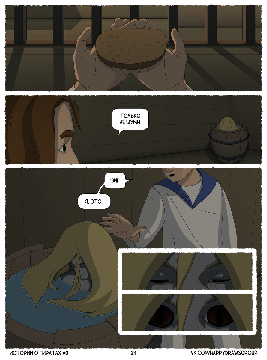 Предыдущие страницы есть в моем профиле. А самые нетерпеливые могут зайти в мою группу вконтакте, где уже выложен весь "нулевой" том целиком. Первая часть: Вторая часть: Итак, настала ночь, все дети кроме Чарли заснули, а паренёк-надсмотрщик куда-то ушёл. Что же будет дальше? Спасибо за внимание! Надеюсь, вам понравилось то, что вы только что прочитали. Свои предположения о том, что будет дальше можете оставлять в комментариях. Для тех, кто не устоял и уже прочитал всё в группе вконтакте просьба воздержаться от спойлеров! Продолжение здесь: Также у меня есть небольшое, но важное объявление! "Истории о Пиратах. Том 0" и "Истории о Пиратах. Том 1. Пролог" будут напечатаны! Предзаказ на печатную версию комикса вы можете оформить по ссылке https://forms.gle/731NPr7syXc5dcDQ9