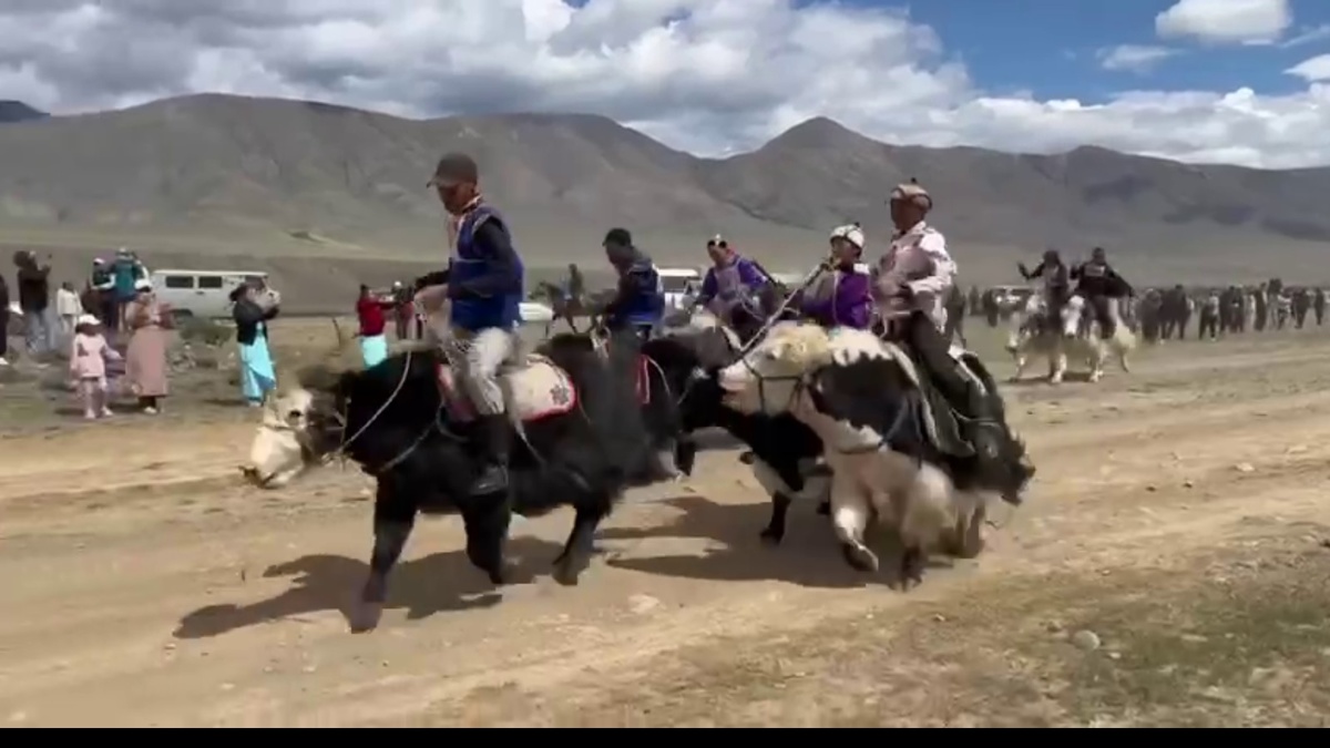 В Монгун-Тайгинском кожууне (районе) Тувы завершился один из самых интересных и самобытных праздников – фестиваль яков и яководов. Поскольку в районе более 8 тысяч голов этого невысокого, но очень выносливого и полезного животного – то и кожуун является центром яководства. Яки не любят жару, их длинная тёплая шерсть прекрасно сохраняет тепло, их молоко очень питательно, в нём гораздо больше жира, белков, углеводов и жирорастворимых витаминов, нежели в коровьем молоке. В Монгун-Тайге яки, или, как их ещё называют, сарлыки фактически круглогодично находятся на подножном корме. Яков часто используют в качестве не только вьючных животных, но и тягловых, для перевозки вещей, а также иногда на них ездят верхом. Именно поэтому апофеозом фестиваля и стали скачки на яках – одновременно и развлечение, и сложное соревнование – удержать на горбе небольшого. Но резвого животного не так и просто, скачки часто сопровождаются падением. Хотя на этот раз всё прошло без происшествий, по степи промчались