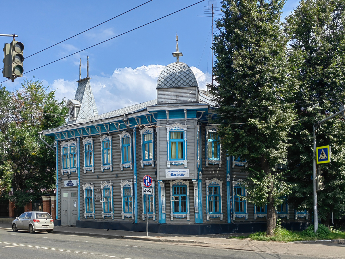 В этой заметке я хочу показать вам изнутри одно интересное здание, в котором, при желании, вы можете пожить, если когда-то окажетесь в Ярославле. Речь идёт о Доме российско-германской дружбы (г. Ярославль - г. Кассель), где сейчас размещается гостиница Кассель. Это здание в качестве ночлега мы выбрали, главным образом, по той причине, что внутри сохранился изразцовый камин, пространство вокруг которого частично стилизовали под старину. В итоге получилась атмосферная гостиная, состоящая из двух смежных помещений, где каждое утро мы завтракали. Что известно об этом здании? Деревянный особняк в архитектурном стиле модерн был построен в начале XX века по заказу немецкого купца. Это единственный образец немецкой архитектуры города Ярославля. Семья купца покинула своё жилище в начале 1930-х годов, а помещение было переделано в коммунальные квартиры. В 1988 году немецкий город Кассель стал городом-побратимом Ярославля. По инициативе обербургомистра города Кассель Ханса Айхеля и вице-прези