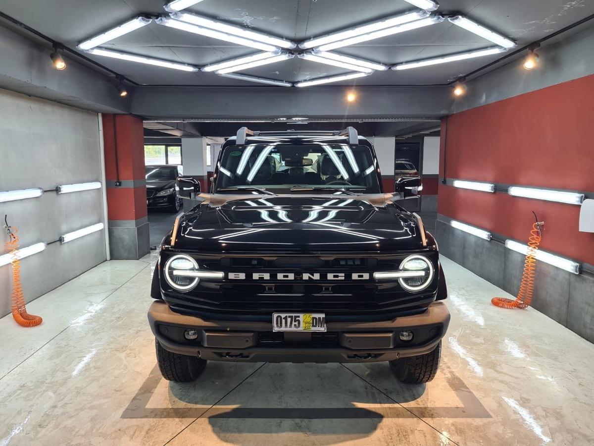 Фронтальная часть автомобиля выделяется крупной решеткой радиатора с большой эмблемой Bronco, мощными светодиодными фарами и вертикальными вентиляционными отверстиями, которые не только улучшают вентиляцию, но и образуют узнаваемое лицо модели. Боковой профиль демонстрирует четкие линии, прекрасно сочетающиеся с квадратными формами и широкими дверями, обеспечивающими легкий доступ в салон. Специальные усиленные пороги и защитные панели подчеркивают внедорожный дух и повышают устойчивость к механическим повреждениям на пересеченной местности.