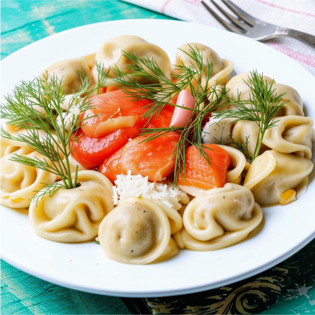 Этот необычный рецепт пельменей сочетает в себе традиционные техники приготовления и необычные ингредиенты. В качестве начинки используется лосось, который придает блюду нежный вкус, а сливочно-укропный соус делает его сочным и ароматным.