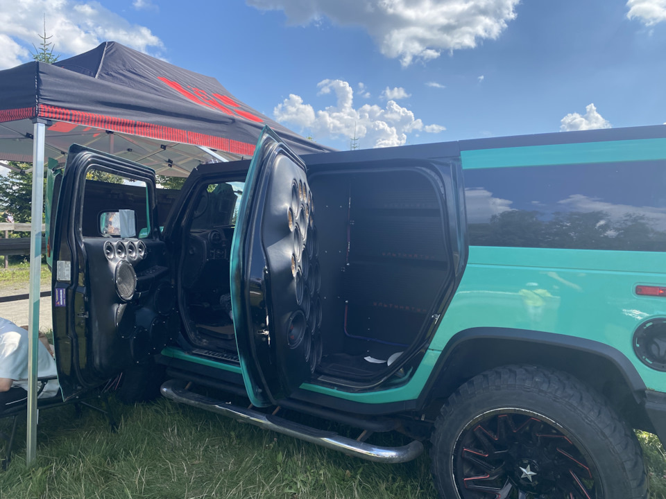 Где-то вдалеке доносились песни со сцены, а по пути стоял Хаммер с кучей колонок внутри.