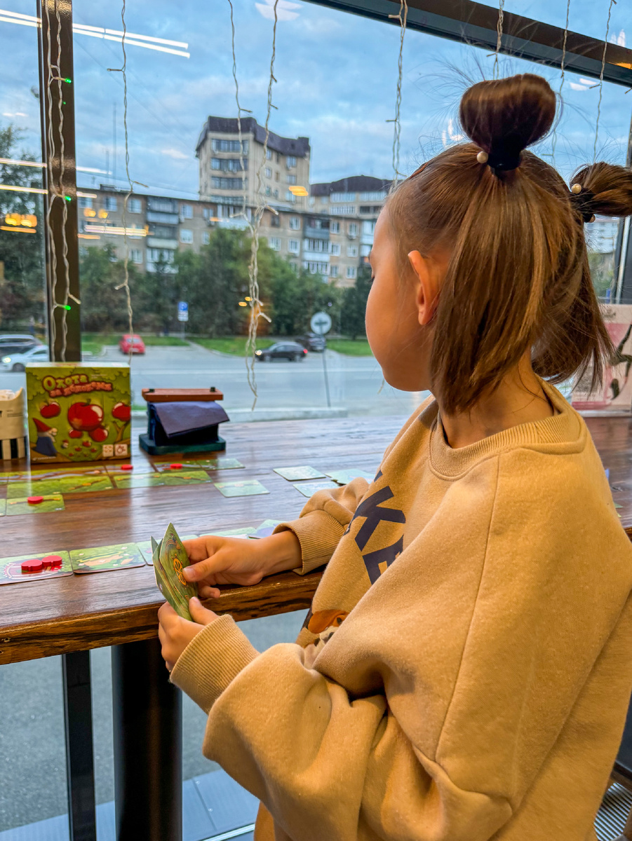 Ника приболела, и мы играем в совсем простые и недолгие игры — сегодня объектом внимания моей статьи станет игра «Охота за яблоками». ПРАВИЛА Партия длится 3 раунда, настолка играется составом от 2 до 4 участников. От состава зависит длина «поля» — ветки, на которой растут и зреют яблоки, чтобы упасть в ваши корзины. В начале игры каждому участнику раздаются взакрытую два персонажа — по ним становится понятно, в какие корзины вам нужно закидывать созревшие яблоки (стилистика оформления персонажа и корзинки совпадают). Остальные участники не знают, куда вам нужно отправлять яблоки, и это добавляет игре перчинки — когда соперник решает отправить яблоко хоть куда-нибудь и это оказывается ваша корзинка, случаются забавные конфузы:) В свой ход вы разыгрываете одну из трёх карт с руки и в конце хода снова добираете до трёх карт. Карты в игре делятся на несколько типов, самый частый из которых — механизмы, которые позволяют скатывать яблоки в какую-то сторону. Между веткой с яблоками и корзин