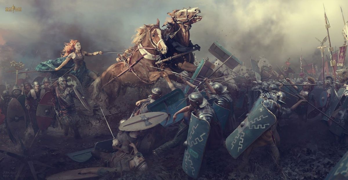 Предводитель римской армии Гай Светоний Паулин сгруппировал свои силы в Уэст-Мидлендсе. С флангов позиции были окружены лесом. Его силы насчитывали более 10 000 человек, среди которых были четырнадцатый легион, подразделения двадцатого легиона и множество ополченцев. Однако войска Боудикки во много раз превосходили силы Светония. Тацит пишет, что Боудикка управляла своими войсками с колесницы, обратившись перед битвой к своим людям с речью, в которой просила считать себя не царицей, которая мстит за потерянное царство, а обычной женщиной, мстящей за своё избитое плетьми тело, за поруганное целомудрие дочерей. С её слов, боги были на их стороне, один легион, решившийся противостоять им, они уже разбили, разобьют и другие. Однако римляне, более умелые в открытых сражениях, противопоставили числу навыки. В нач