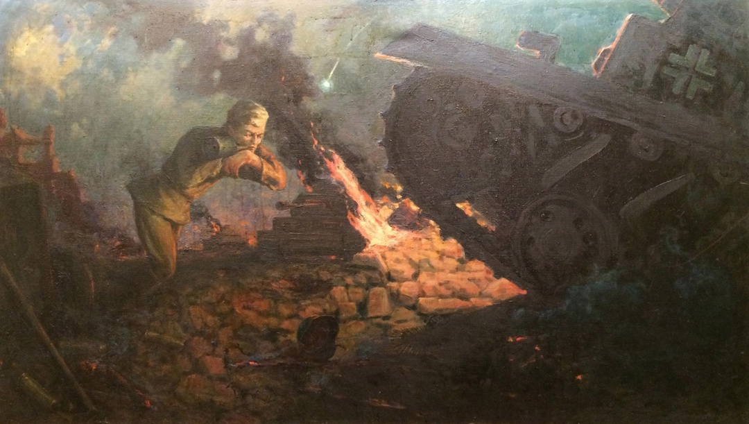 Вскоре боец лишился кисти правой руки. В это время немецкие танки двинулись в узкую лазейку между развалин.