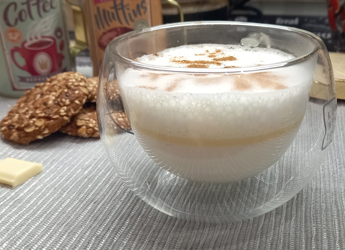 Напиток в серый дождь и под хмурое чтиво типа Достоевского:) Так и случилось: это невеселое комбо заставило воплотить задуманное - простейший рецепт на основе молока и белого шоколада. В принципе, все - это два основных ингредиента! И еще из допов: капучинатор ручной и немного корицы (по желанию). 250 мл молока
