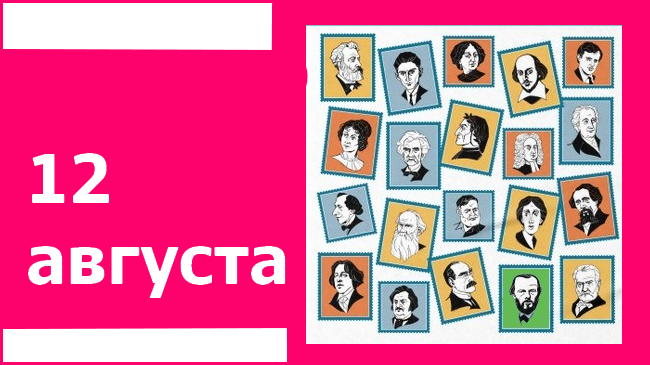 250 лет английскому поэту Роберту Саути (Robert Southey, 1774-1843) 90 лет советскому писателю Олегу Михайловичу Куваеву (1934-1975) русская писательница Авдотья Яковлевна Панаева (во втором браке — Головачёва, 1820-1893) русская писательница Елена Петровна Блаватская (1831-1891) испанский писатель Карлос Рохас (Carlos Rojas Vila; 1928-2020) американский писатель Уильям Голдман (William Goldman, 1931-2018) немецкий писатель Карл Микель (Karl Mickel, 1935–2000) итальянская писательница Бьянка Питцорно (Bianca Pitzorno, 1942) итальянский писатель Стефано Бенни (Stefano Benni; 1947) американская писательница Элейн Каннингем (Elaine Cunningham; 1957) английский поэт Уильям Блейк (William Blake; 1757-1827) немецкий писатель, лауреат Нобелевской премии по литературе 1929 года Томас Манн (Paul Thomas Mann, 1875-1955) английский писатель Ян Флеминг (Ian Lancaster Fleming, 1908-1964) советский писатель Василий Михайлович Песков (1975—1997)