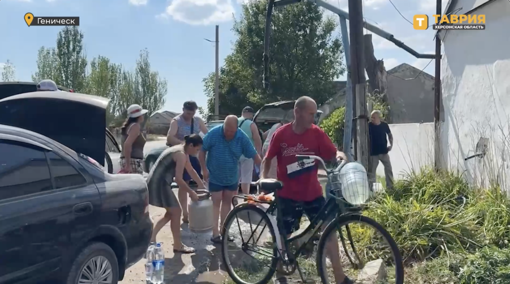 В Геническе возле филиала «Облводоканала» местные жители набирают питьевую воду. Об этом сообщили корреспонденты «Таврии» с места событий. Отмечается, что рядом с филиалом «Облводоканала» был установлен генератор, который позволяет жителям получить доступ к питьевой воде. В городе также организовали раздачу технической и питьевой воды. Техническую воду можно получить по улице Центральной (магазин 33 кв метра), а питьевую — по улице Соборной, дом 196. Напомним, в результате неблагоприятных погодных условий между Херсонской и Запорожской областями рухнули 6 опор линии электропередач, в результате в пяти муниципальных округах Херсонщины отсутствует подача электроэнергии. Без электричества, воды и связи остались 157 900 тысяч абонентов. Губернатор Херсонской области Владимир Сальдо ранее сообщил, что переподключение области к электросети запланировано на вечер 11 августа. ]]>