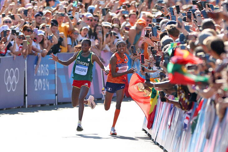 Жесткий финиш в женском олимпийском марафоне – лидерам не хватило 42 км для разборок и в ход пошли локти. Метров за 200 до финиша впереди остались только двое: голландка Сифан Хассан и эфиопка Тигист Ассефа. Обе супертопы: Хассан – двукратная олимпийская чемпионка (правда, на других дистанциях), а Ассефа – действующая рекордсменка мира (год назад она снесла рекорд в Берлинском марафоне). Ассефа вырвалась вперед – Хассан пыталась ее обойти, но эфиопка блокировала. Сифан все-таки нашла лазейку и вклинилась к сопернице на повороте. Ассефа попыталась заблокировать и тут, но сама чуть не отлетела от столкновения. Хассан устояла и воспользовалась заминкой, оторвавшись на несколько метров. До самого финиша Сифан оборачивалась, но столкновение, похоже, выбило из эфиопки последние силы. Хассан – чемпионка! Эта Олимпиада для Сифан вообще уникальная: за 10 дней она пробежала 62 км, и это не считая тренировок. Изначально Хассан бралась в Париже за, как казалось, необъятное: 1500, 5 000, 10 000 и м
