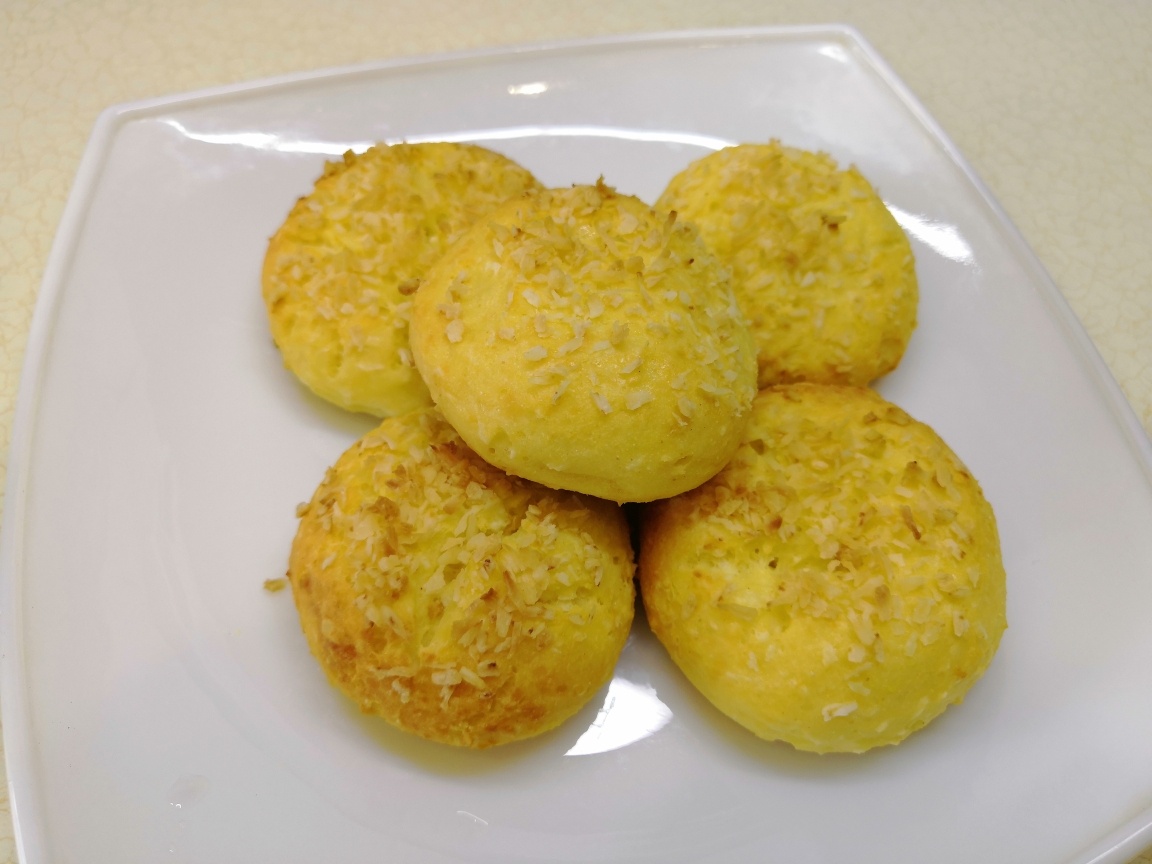 КБЖУ на 100 гр: 212/14.3/10.1/15.8 Ингредиенты: 1. К творогу добавила яйцо, разрыхлитель и подсластитель. Хорошо размешала до однородности. 2. Затем добавила два вида муки и кокосовую стружку (чуть стружки надо оставить для посыпки. Вымесила тесто рукой. Муку можно использовать любую, просто здесь мне нравится, что кукурузная дает легкий желтый оттенок, а рисовая традиционно делает выпечку пышнее. 3. Влажными руками брала чуть теста, делал шарик и немного приплюснула. Каждое печенье посыпала сверху кокосовой стружкой. 4. Запекать при 180 гр 20-30 минут, смотрите по своей духовке, печенье должно подрумяниться сверху, но при этом остаться мягким.