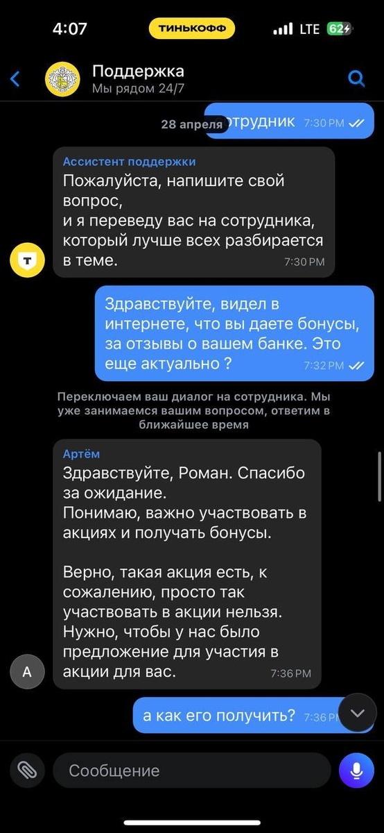 - При написании отзыва укажи дату и месяц обращения в чат-банка и имя сотрудника, который тебе помог в решении твоего вопроса.
