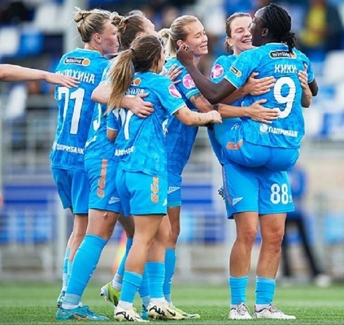 Женская команда «Зенита» сегодня в матче 16-го тура Суперлиги победила московское «Динамо». Встреча, которая прошла на стадионе «Смена СДЮШОР – Академия «Зенита» в Петербурге, закончилась со счётом 5:2 в пользу сине-бело-голубых. У «Зенита» были точными Габриэла Гживиньска (два гола), Ксения Цыбутович, Кики (два гола). После этой игры «Зенит» набрал 38 очков и занял первое место в турнирной таблице женской Суперлиги. Напомним, что в минувшую субботу мужской «Зенит» выиграл у «Динамо» в четвёртом туре чемпионата России. Единственный мяч москвичам забил Максим Глушенков. После этой встречи, которая прошла на «Газпром Арене», петербургский клуб стал единоличным лидером чемпионата.