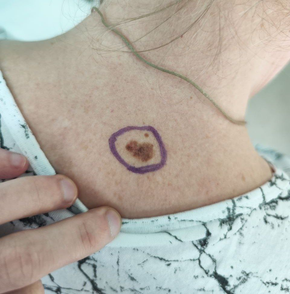 Сегодня хочу рассказать о случае, который произошел совсем недавно. Ко мне обратилась приятная женщина 70 лет по направлению онколога по месту жительства с жалобами на образование на коже спины. Она заметила его сравнительно недавно, но оно быстро росло на протяжении последних двух месяцев. Примечательно, что раньше в этом месте она ничего не замечала. Мы обсудили возможный диагноз, необходимость удаления кране подозрительной в отношении меланомы родинки. Образование было удалено под местной анестезией. Операция прошла успешно, здесь результат на следующий день после операции, пациентку отпустили домой с рекомендациями по перевязкам и договорились о встрече через неделю для обсуждения результатов. На следующей недели мы получили гистологическое заключение — меланома. Конечно, диагноз звучит страшно, но в нашем случае все оказалось не так уж плохо. По результатам толщина образования по Бреслоу составила менее 0,8 мм, а результаты ПЭТ/КТ показали отсутствие отдаленных метастазов. Это о