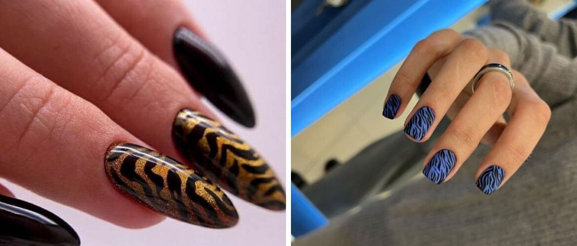 Яркий тигровый маникюр