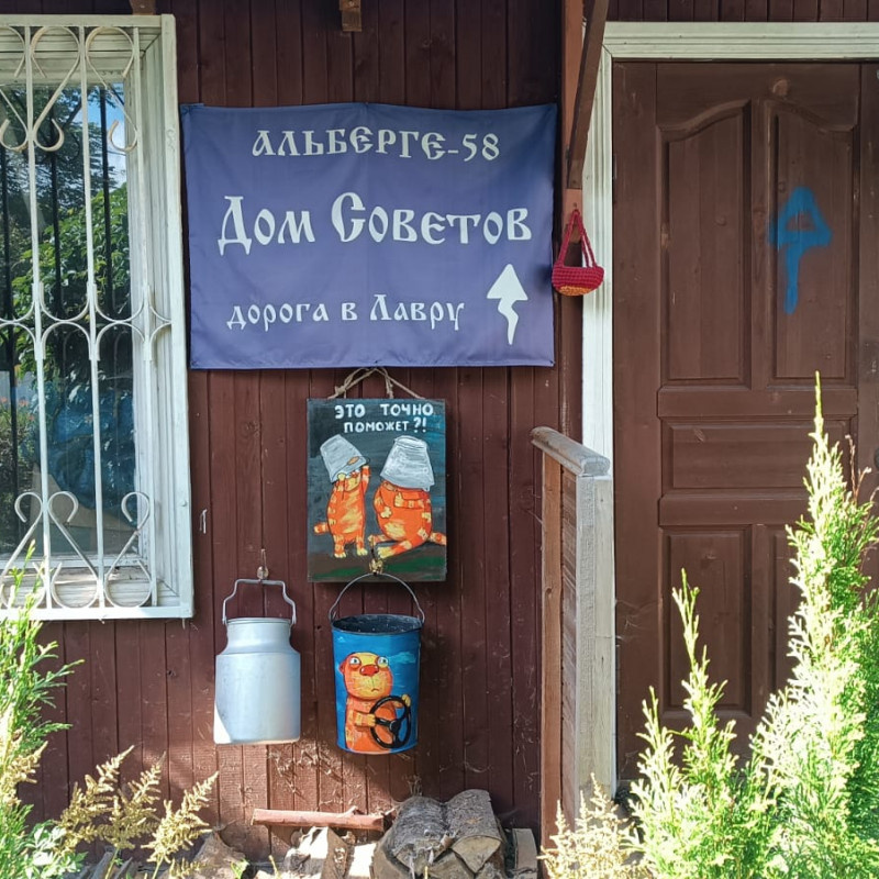 Этап Мураново - Абрамцево первоначально мы с девчонками планировали пройти в сарафанах. Думали, лето заканчивается, собраться нам вместе непросто, надо успеть выгулять красоту неописуемую. А то несправедливо как-то получается - в Беловежской пуще нарядные гуляли, а по Дороге в Лавру нет. Но, поразмыслив, решили, что в Радонеже (на следующем этапе) в сарафанах прям здоровски фотосессию устроить, а сейчас пойдём в красных штанах и футболках с балалайками, в нашей форме из белорусской поездки. К классной, дружной компании красных девиц присоединились магаданские девчонки Света и Саша, а ещё Елена из Тулы, которая внимательно читала мои предыдущие отчёты о походах в Лавру и припасла подарочки для Александра Советова и его Альберге-58. Александру я позвонила заранее и уговорила подсесть на нашу электричку и проехать пару остановок от Зеленоградской до Софрино, чтобы не комкать торжественное вручение десятилитрового бидона и раритетного примуса. Теперь Александру нужен двухлитровый бидончик,