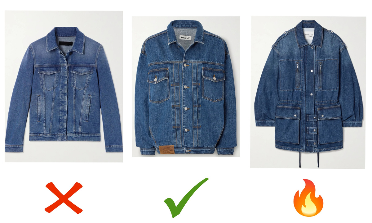 Устарело: Узкие и короткие джинсовки в 2024 году смотрятся не так актуально, как 30 лет назад. Нарочитая выбеленность, потертость, рванность и любой декор в виде вышивки, страз, бусин на такой модели дешевит образ. Однако, если такая джинсовка есть в вашем гардеробе, носите ее с объемным низом, чтобы получить перепад объемов. Узкие брюки или скинни тут не подойдут.