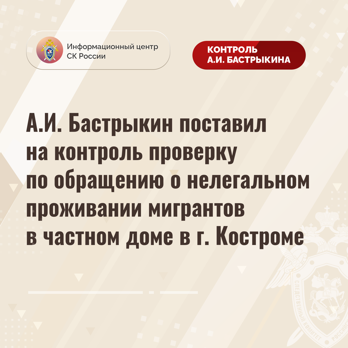 А.И. Бастрыкин поставил на контроль проверку по обращению о нелегальном проживании мигрантов в частном доме в г. Костроме