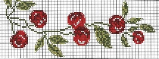 Можно связать эти вишни в технике интарсии, или попробовать жаккард, либо элементарно вышить по петлям трикотажным швом, будет не менее красиво, однако намного проще и быстрее. Линии на схемах можно вышить стебельчатым швом, это совершенно не сложно, и если вам такой шов не знаком - это не повод отказываться от понравившейся схемы! Просто посмотрите, как это делать, и попробуйте, и все обязательно получится!